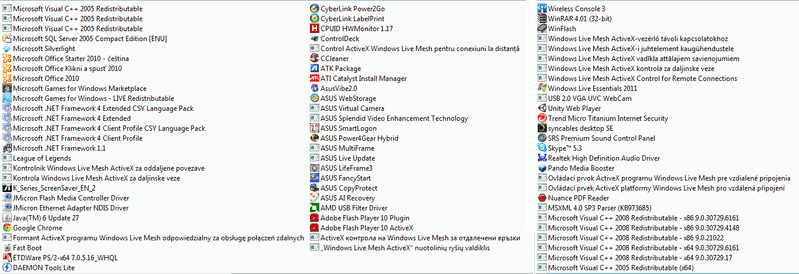 Po opravě odkazů na obrázky je už vidím. A to není seznam odkazů v Ovládacích panelech, ale seznam nainstalovaného softwaru. Je pravdou, že toho máš tam spoustu a pokud něco nevyužíváš, tak raději s tím pryč. Pokud však nevíš co odinstalovat, tak to je pak na delší trať. Muselo by se to konzultovat s tebou položku po položce.