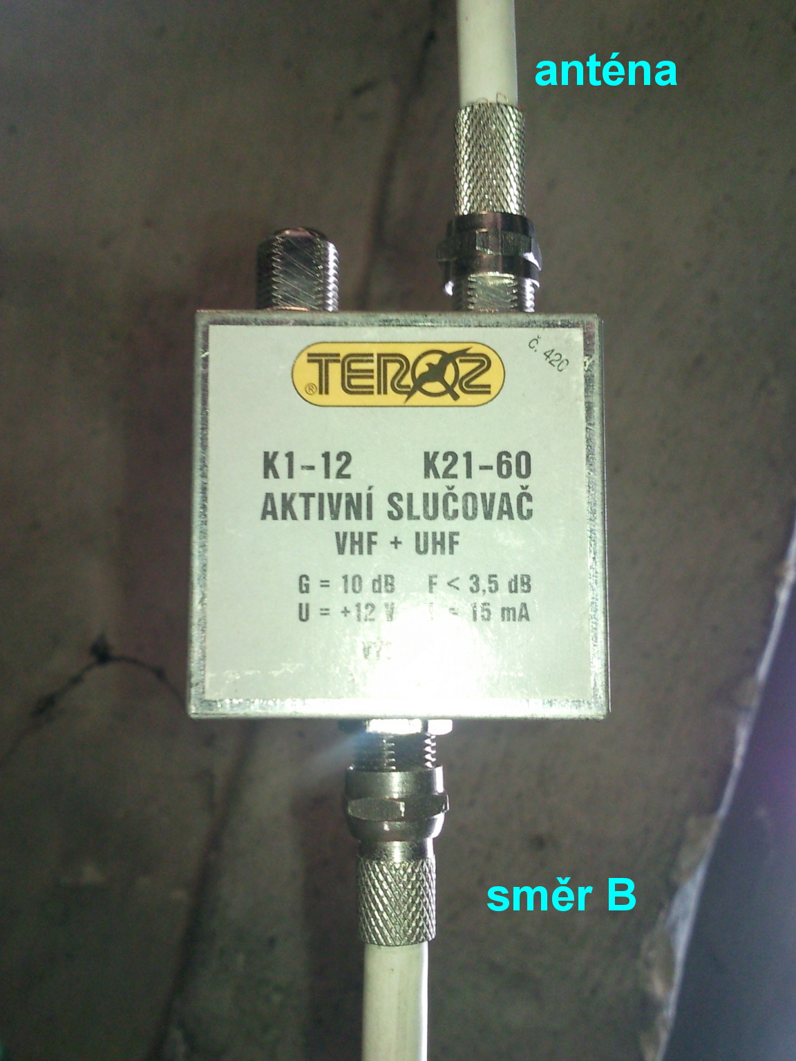 Rozbočovače (B,C) mají většinou jen jeden výstup, přes který projde napájecí napětí pro anténní zesilovač. Měl by být označen.