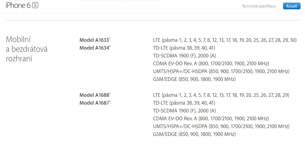 Re: Bude iPhone 6S model A1633 fungovat v ČR?