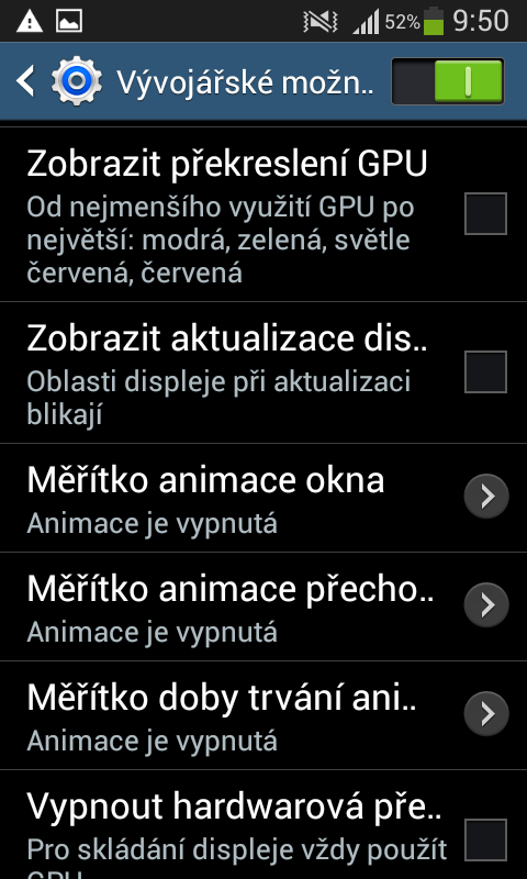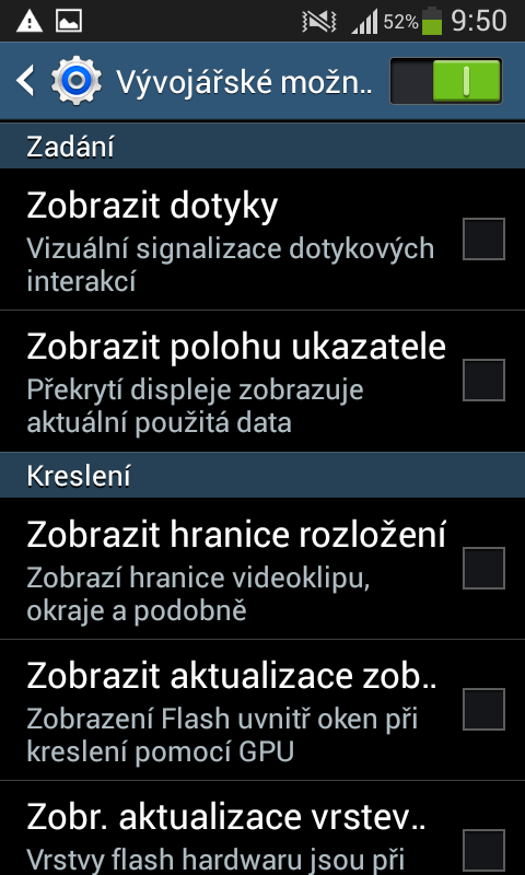 Ve vývojářských možnostech není žádná položka týkající se nějakých přístupových práv. Alespoň já ji tam nevidím.