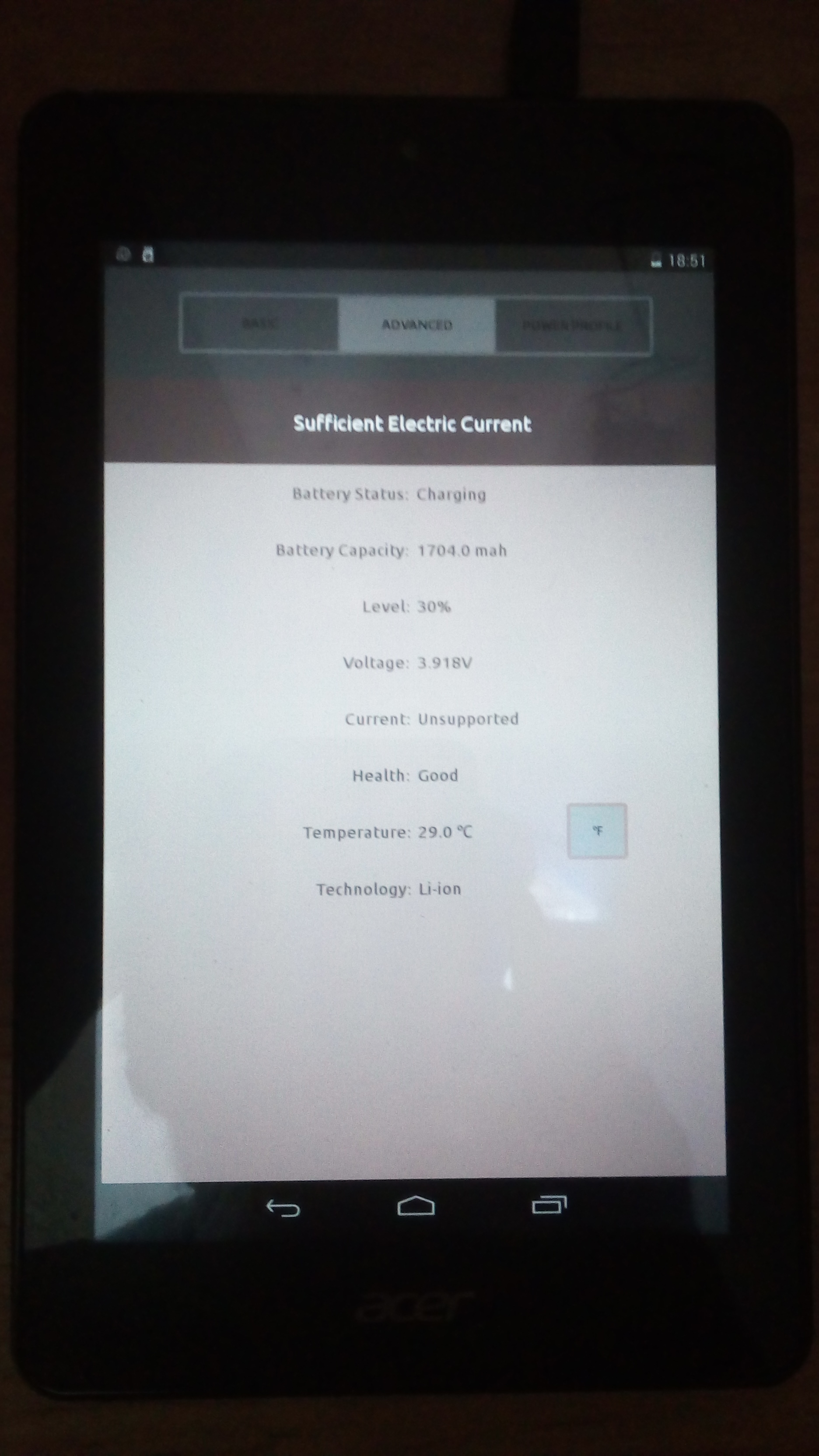 Mám menší problém s tabletem Acer Iconia One 7, který už několik týdnů ukazuje úroveň nabití 30% bez ohledu na skutečný stav nabití. Baterie se nabíjí, protože při připojení nabíječky stoupá napětí baterie. Problém je ale v tom, že skutečný stav nabití mohu pouze odhadovat podle napětí a podle zkušeností s používáním.