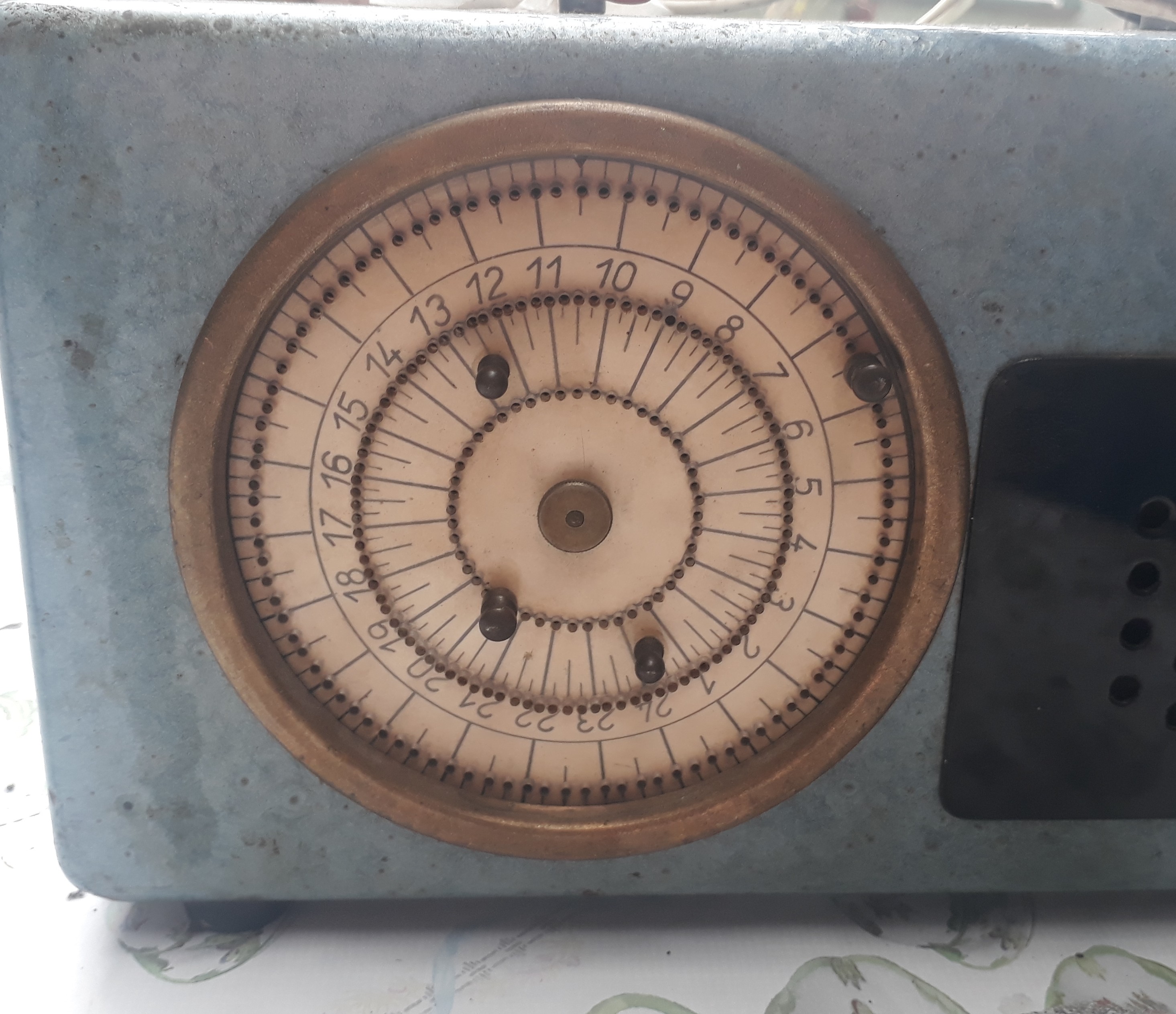 To jsem z toho jelen. Na ciferníku je asi nějaká elektrická brzda, aby se zastavil při příletu a nad repráčkem pro signál návratu by mohlo být něco k napojení toho snímače návratu. Jen spekuluju... Pokud by se ciferník zastavil, tak mi tam zas přijdou zbytečné ty kolíčky a navíc by šlo jen odpojit napájení a zastavilo by se to taky i bez brzdy, takže spekulace asi bude nesprávná...