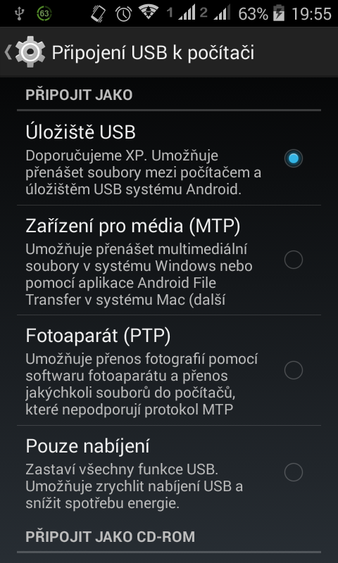 toto nastavení by se Vám mělo zobrazit po připojení k PC