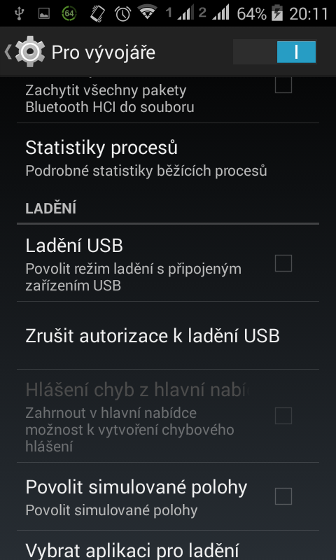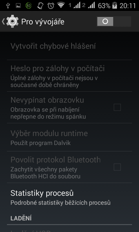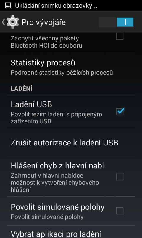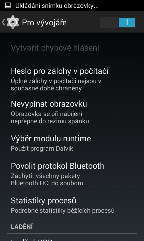 tak už jsem se dostal do vývojářských možností, ladění jsem povolil, ale výsledek je stejnej..