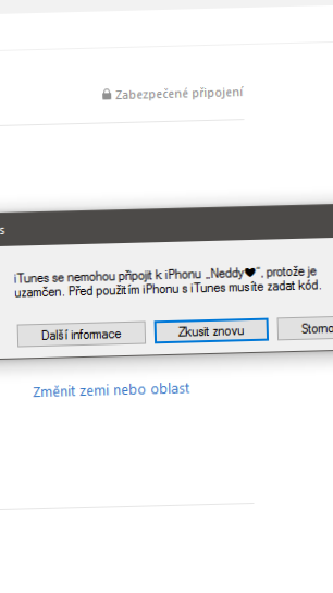 Heslo od všeho mám a když zapojím telefon do pc kde mam iTunes tak se nic neděje a píše to toto (viz. obrazek)