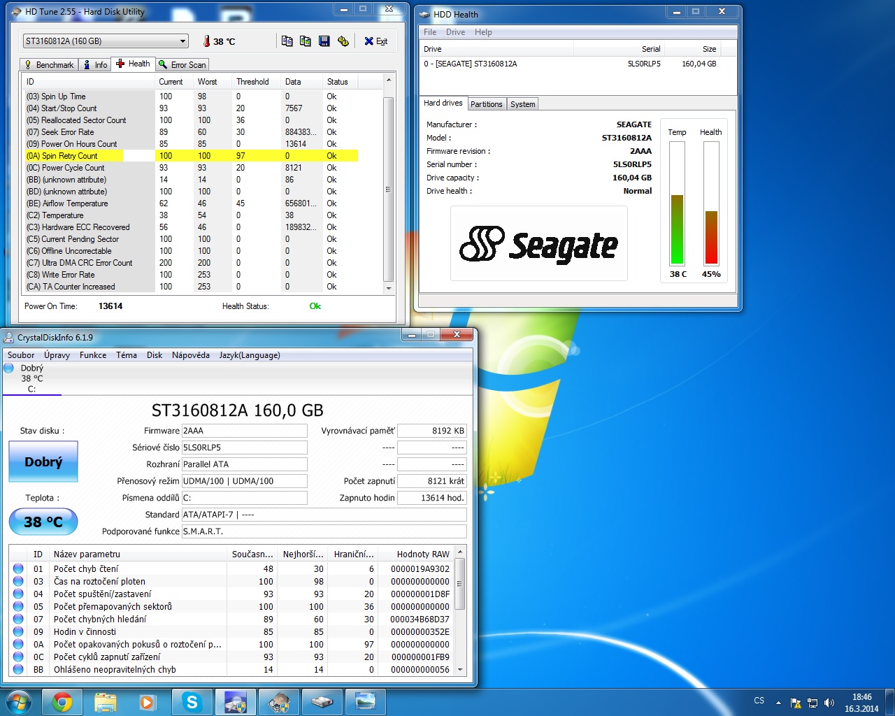 Zdravím, disk mě teď začíná zlobit, dělá divné zvuky a někdy to hodí černou obrazovku a musím PC 2x restartovat aby se načetl windows disk už mám cca 9 let konkrétně tenhle http://www.czc.cz/seagate-barracuda-720 ... 35/produkt zajímá mě jestli už ho mám vyměnit nebo ještě postačí, ale rychlost disku nic moc.