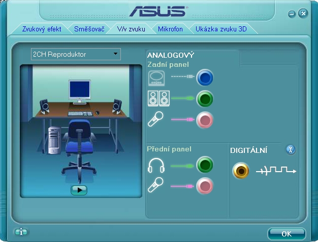 Ovládací panely>Realtec sound effect manager>V/v zvuku>nastavení konektorů