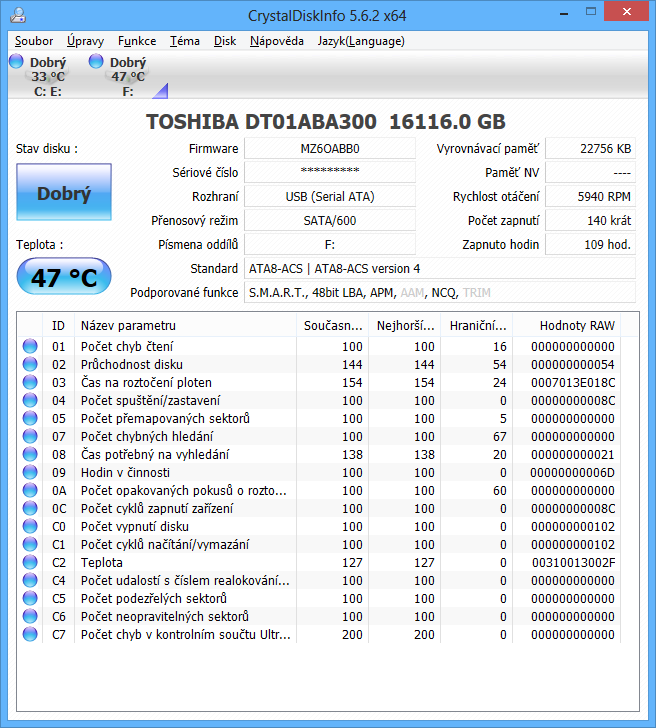 Posilam prvni dva printscreen. Po pravde receno ten program CrystalDiskInfo jsem pouzil poprve.