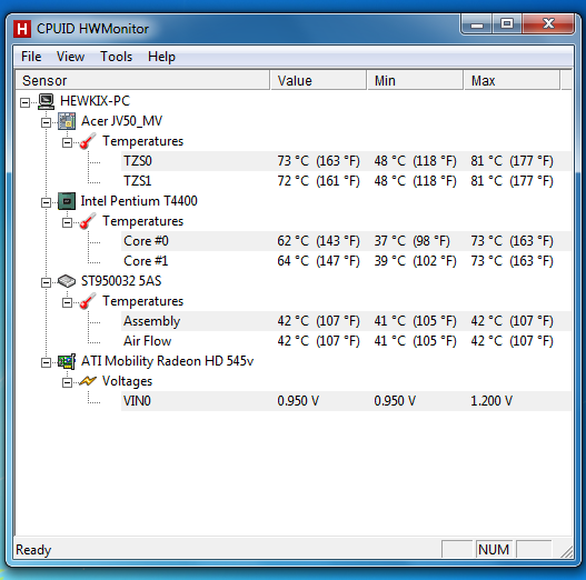 Ntb je asi 4-5 let starý, záruka je tedy pasé. Okej díky nahodím sem nějakej screen s teplotama teda. Jinak jestli máš s tou grafikou pravdu, to se asi nedoplatím že ?