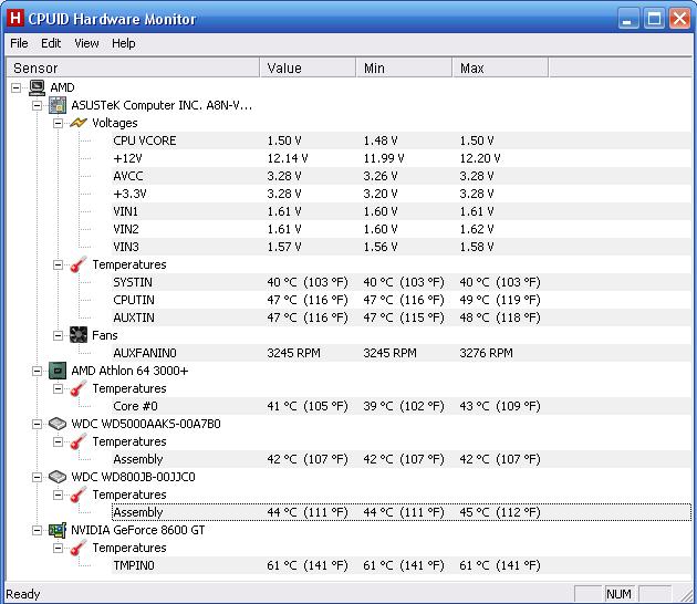 AMD Athlon 64 3000+, 2,5 GB RAM, NVIDIA GeForce 8600 GT (512 MB), HDD: WD 80 GB, WD 500 GB, OS: Windows XP Professional (32-bit), Fedora 16