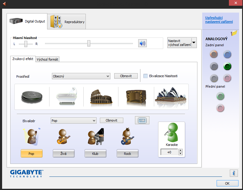 Pokud do vývodu na repro, zkus připojit klasicky přímo do předního panelu na PC, pokud nic neuslyšíš, klikneš na tu složku nad nápisem analogový a v nabídce zaškrtneš "deaktivovat rozpoznávání předního panelu" pak budou hrát sluchátka současně s repro, pokud stále nic, klikneš na barvu konektoru, kam jsi zapojil sluchátka a ručně zvolíš "sluchátka"
