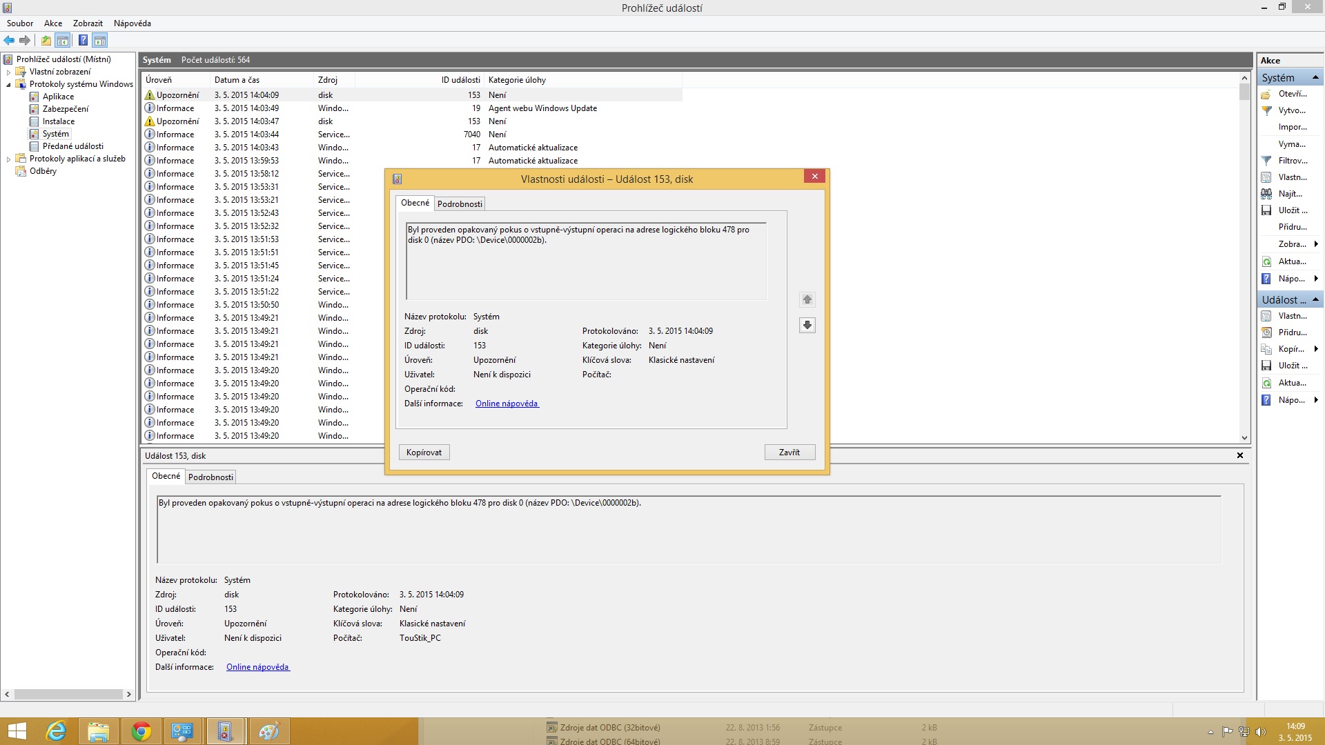V Ovládací panely->Nástroje pro správu->Prohlížeč událostí->Protokoly systému Windows->klik pravým myšítkem na protokol Systém,