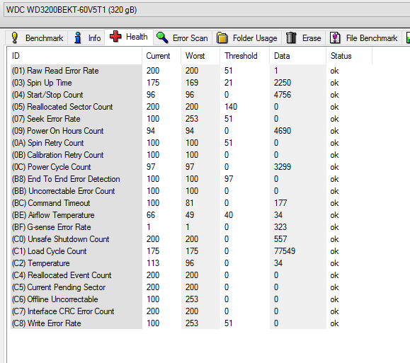 Minulosti obou disků znám tak zhruba. Podle předchozího majitele notebooku s 320GB diskem byl notebook údajně v obýváku a přenášený byl maximálně ze stolu ke gauči. Kdežto majitel notebooku s 500GB diskem svůj notebook používal převážně na cestách. Co je mám já, tak vlastně jenom leži na stole, jednou za týden je obetřu od prachu a zase si tam týden v klidu leží.