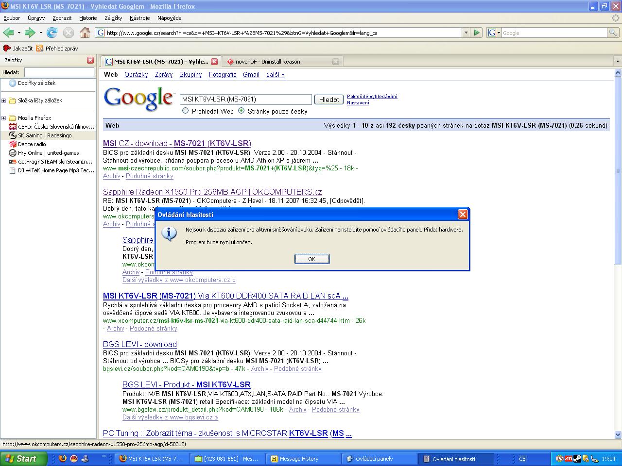 nefunguje zvuk u MSI KT6V-LSR (vyřešeno) Vyřešeno