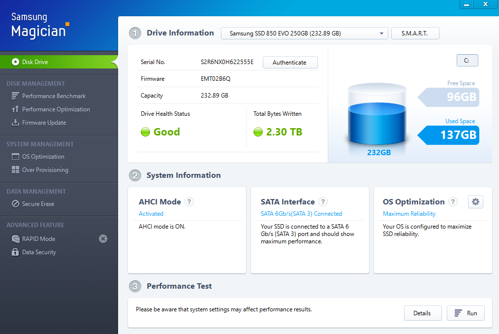 Cca před měsícem jsem si koupil SSD a teď se v softwaru od samsungu (Samsung Magician - příloha) zobrazuje počet zapsaných TB: 2,30. Přijde mi to trochu moc na to, že mám na disku cca 100 GB a nic na něj nezapisuju. Nemáte s tím zkušenost? Proč se to tak rychle zvyšuje? Nemůže to být třeba sledováním Youtube ve FULL HD? Nějaké řešení? Na to že byl PC zapnut s novym SSD diskem max 100 hodin mi příjde 2 TB moc. S takovou můžu kupovat za chvilu novej ssd. Díky za rady.