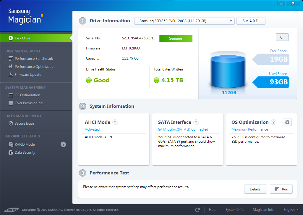 Ja používam nastavenie Advanced.Ak si klikneš v tom programe Samsung Magician vľavo v menu na OS optimization na nastavenie, tak máš tam pri položkách Aktivate, Deaktivate a Shorcut, t.j. položky , ktoré si máš nastaviť sám.Hlavne Virtuálnu Ram a Body obnovenie.