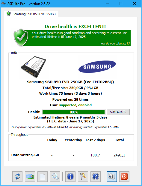 Nepřirozeně vzrůstající počet zapsaných bajtů - TBW - SSD Samsung 850EVO