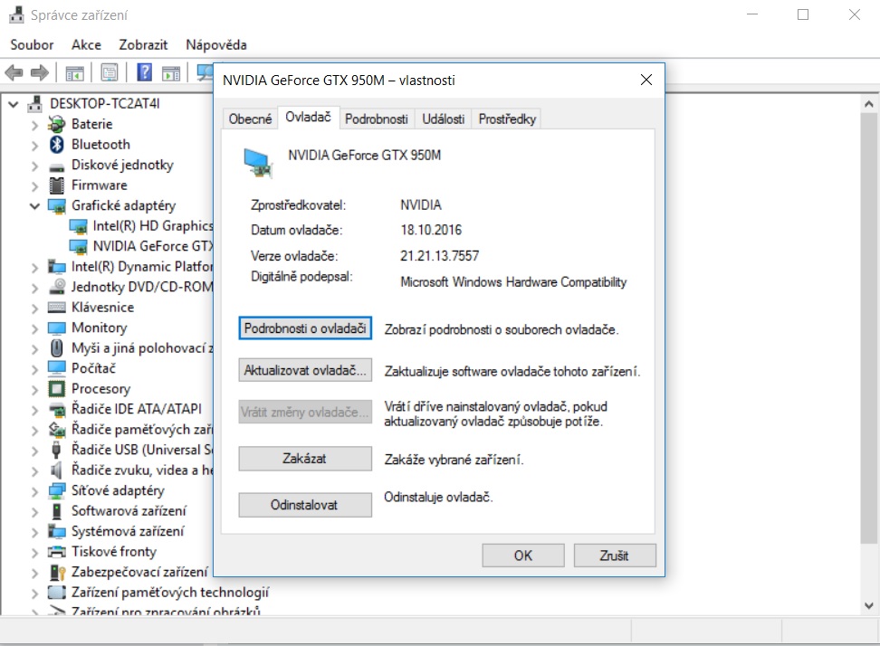 Prosím o radu. Vlastním notebook Asus ROG GL552VX-CN146T a mám problém se stažením ovladačů na grafickou kartu NVIDIA Geforce GTX 950M. GeForce Experience mě sice na dostupnou aktualizaci upozorní, ale stahování probíhá tím stylem, že se sice zahájí stahování, ale stále ukazuje 0%. Po nějaké chvíli mi naskočí prakticky prázdné okno.  Aktualizace se myslím ani nestáhla, číslo verze mám pořád stejné. Verzi 3.2.2.49 jsem zkoušel stáhnout z oficiálních stránek, ale stále stejný problém. Dále jsem zkoušel stáhnout nejnovější verzi 3.3.0.95 u které mi vyskočí okno, že instalační aplikace NVIDIA nemůže pokračovat. Ve správcích zařízení mám datum ovladače 18.10. 2016 - což by souhlasilo s datem koupi notebooku, takže od té doby je prakticky bez ovladačů. Po kontrole ovladačů ve správcích mi napíše, že je aktuální. Takže nevím, jestli mám ovladač starý nebo ne. Každopádně aktualizovat prostě nejde jak jsem psal. Chtěl bych poprosit o radu, zkušenosti či další postup. Za každou radu budu rád. Děkuji moc