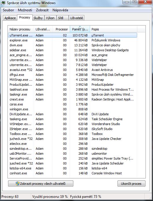 ""ikdyž nemám skoro nic spuštěné"" asi nevidím dobře, ale na tom screenu je toho spuštěné až moc. Asi 90% by se toho dalo vypnout, kdyby ti někdo poradil. A myslím, že v sekci hijackthis bys taky nebyl marně.