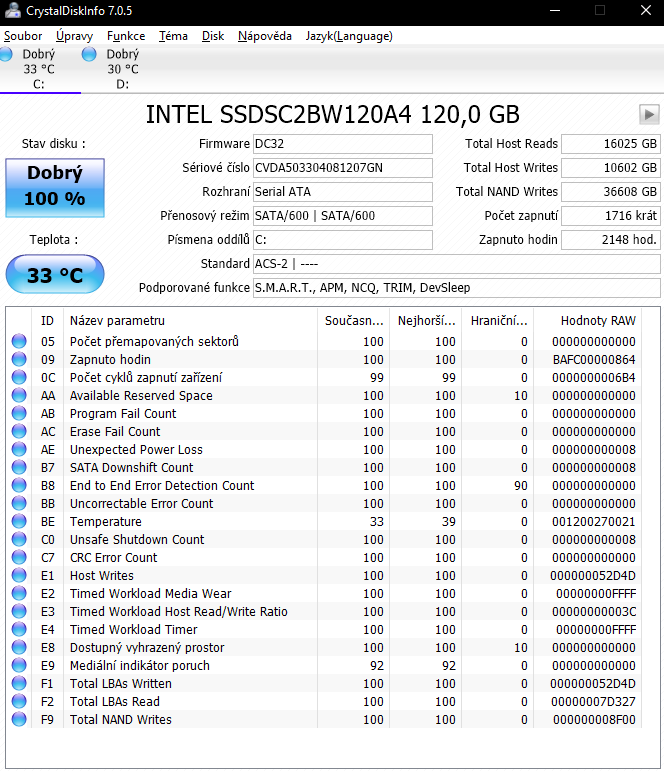 Jinak ani ten WORK TIME není pravdivý. Tenhle SSD mam od +- léta roku 2015 a obvykle ten počítač alespon jednou za den zapnu. Takže ten čas a počet zapnutí je pořádná hovadina.
