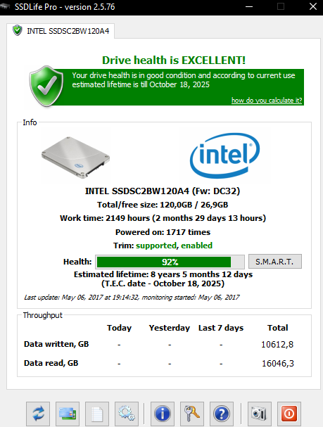 EDIT : Výsledek vyšel zhruba stejně. Tomu upřímně ani nevěřím, že po dvou letém používání tam mam health 92% -_-