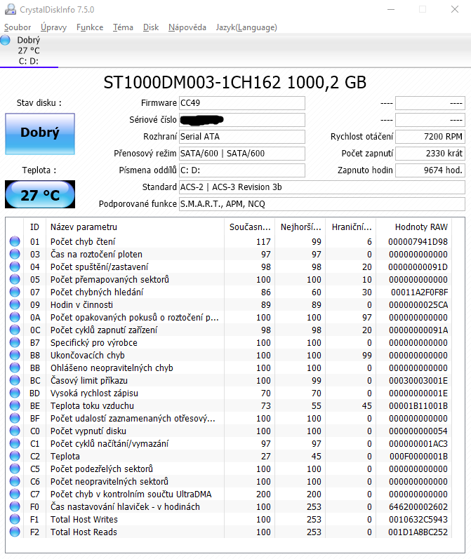 Aha, dobře, moc díky za pomoc :) Hardidsk vyměním co nejdřív po tom, co koupím ssd disk. Jelikož harddisk je už pomalý a systém včetně her a souborů se načítají pomalu, tak prvně koupím ssd disk a hned co nejdřív koupím i nový harddisk..