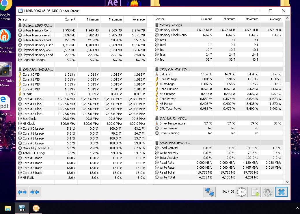 Co jsi měl puštěné s tím HWiNFO na pozadí a jak dlouho? CPU/GPU není na 100%, ale RAMky už dost swapují na disk asi.