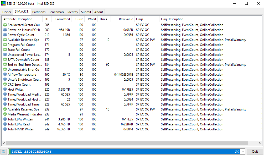 Pozri sa na disk cez Intel® Solid State Drive Toolbox https://www.intel.com/content/www/us/en/support/products/80096/memory-and-storage/ssd-software/intel-ssd-toolbox.htmlA môžeš sem dať screen z Device programu SSD-Z.http://aezay.dk/aezay/ssdz/