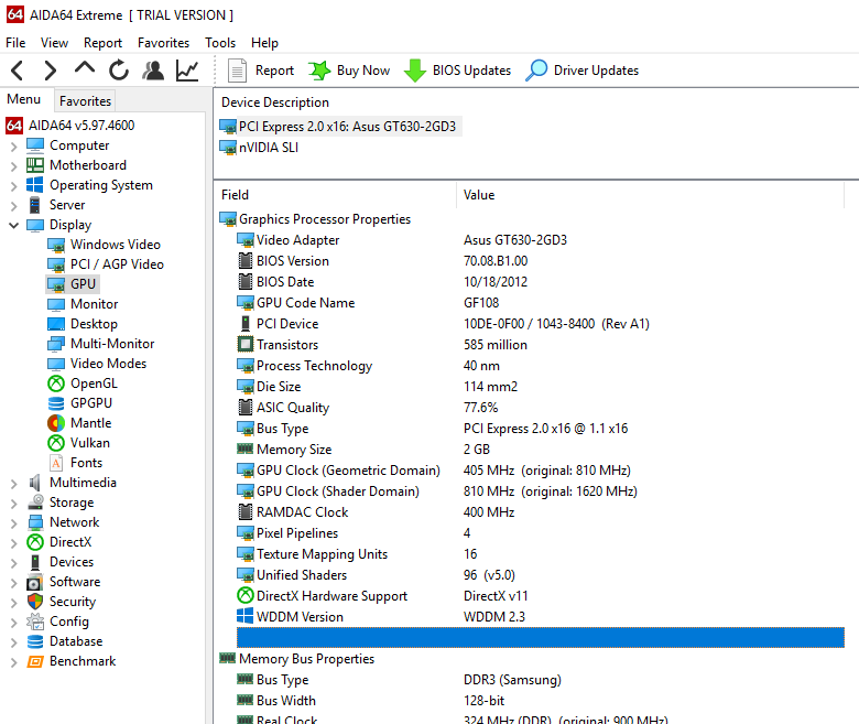 Dobrý den, chci se zeptat, jak analyzovat problém a vyřešit problém s grafickou kartou, při hraní mi ukazuje AIDA64 (program na analýzu a controlling), že grafická karta (GT630 2gddr5) jede na 405Mhz + 800Mhz paměť, má klasicky jet na 810Mhz + 1600Mhz paměť a když jsem používat Asus GPU Tweak tak i např. na 880Mhz nebyl problém. Nevíte co s tím? Nepřehřívá se, právě že vždy jsem míval max. teplotu okolo 65°C - 70°C a teď max. teplota nepřevrší 40°C jak jede na malou frekvenci. :cry: :cry: :cry: