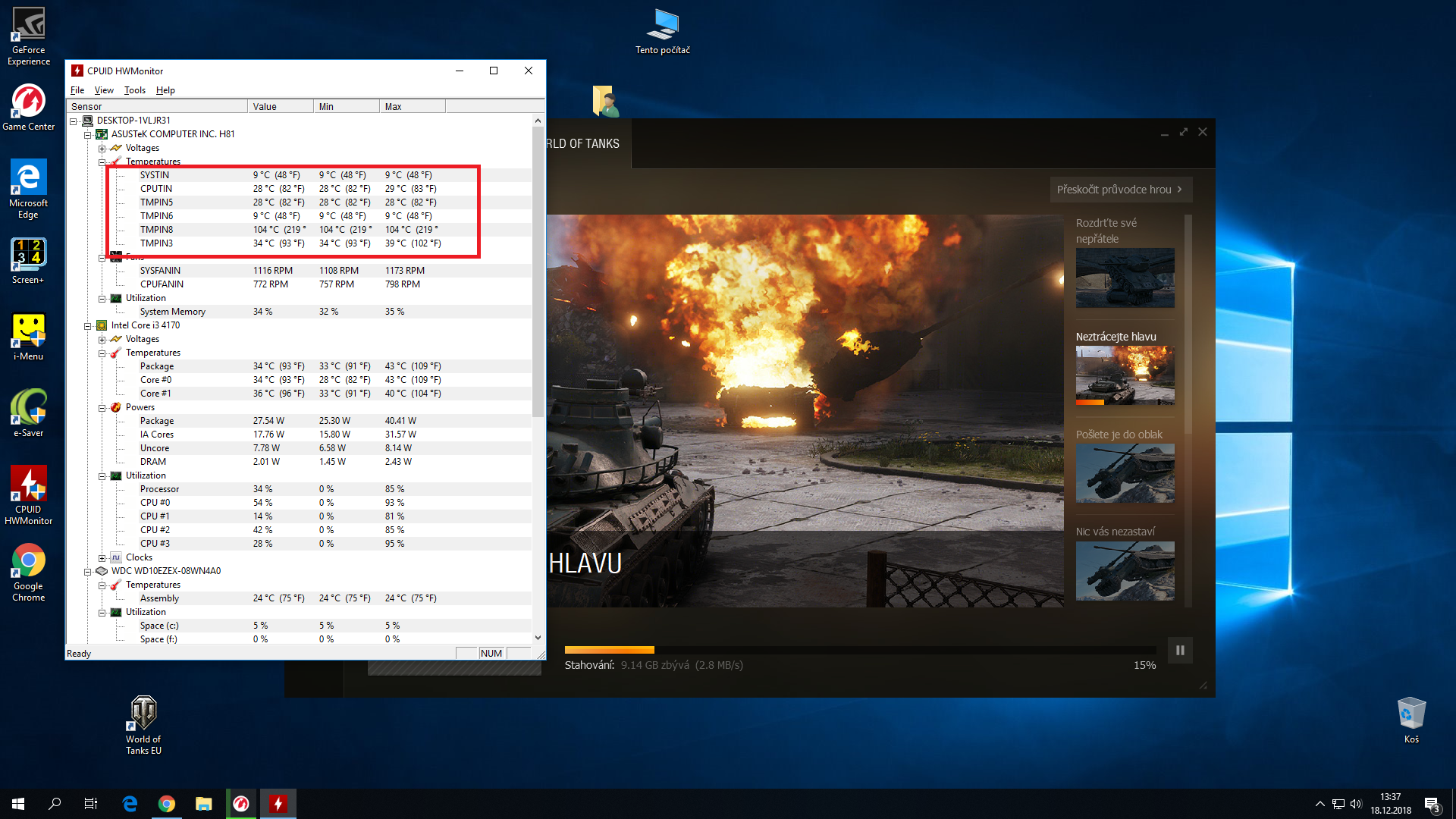 Hele a opravdu je ta teplota reálná? Na jedné z LGA 1150 desek mám taky senzor co trvale ukazuje kolem 100C.
