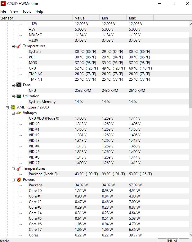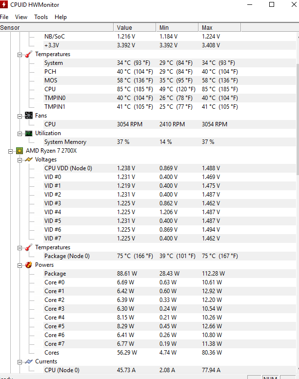 Ahojte, dostala jsem novy procesor ryzen 7 2700x ,novou desku MSI x470 gaming pro Carbon a problém je s teplotou procesoru. Strašně kolísá. Při klidovém režimu teplota lítá od 30-50 stupňů, při hraní např. CsGo mi vylitla až na 93stupnu. Teplota se mění každou sekundu, v jednu chvíli je třeba 80stupnu a za sekundu klesne na 60 a další sekundu vylítne na 75 . Chlazení je dobre usazené i prepastovane. Ještě musím zmínit že mám zdroj seasonic s12II-620 a on má jeden 8pin konektor pro napájení procesoru, ale deska má dva osmipinove konektory pro napájení. Omlouvám se, lépe to vysvětlit neumím. Předem děkuji za odpověď a případné rady. Přikládám dva screeny, ten s nižší teplotou je cca dvě min po zapnutí pc bez zátěže, ten s vyšší je po třech minutách hraní hry ring od elysium.