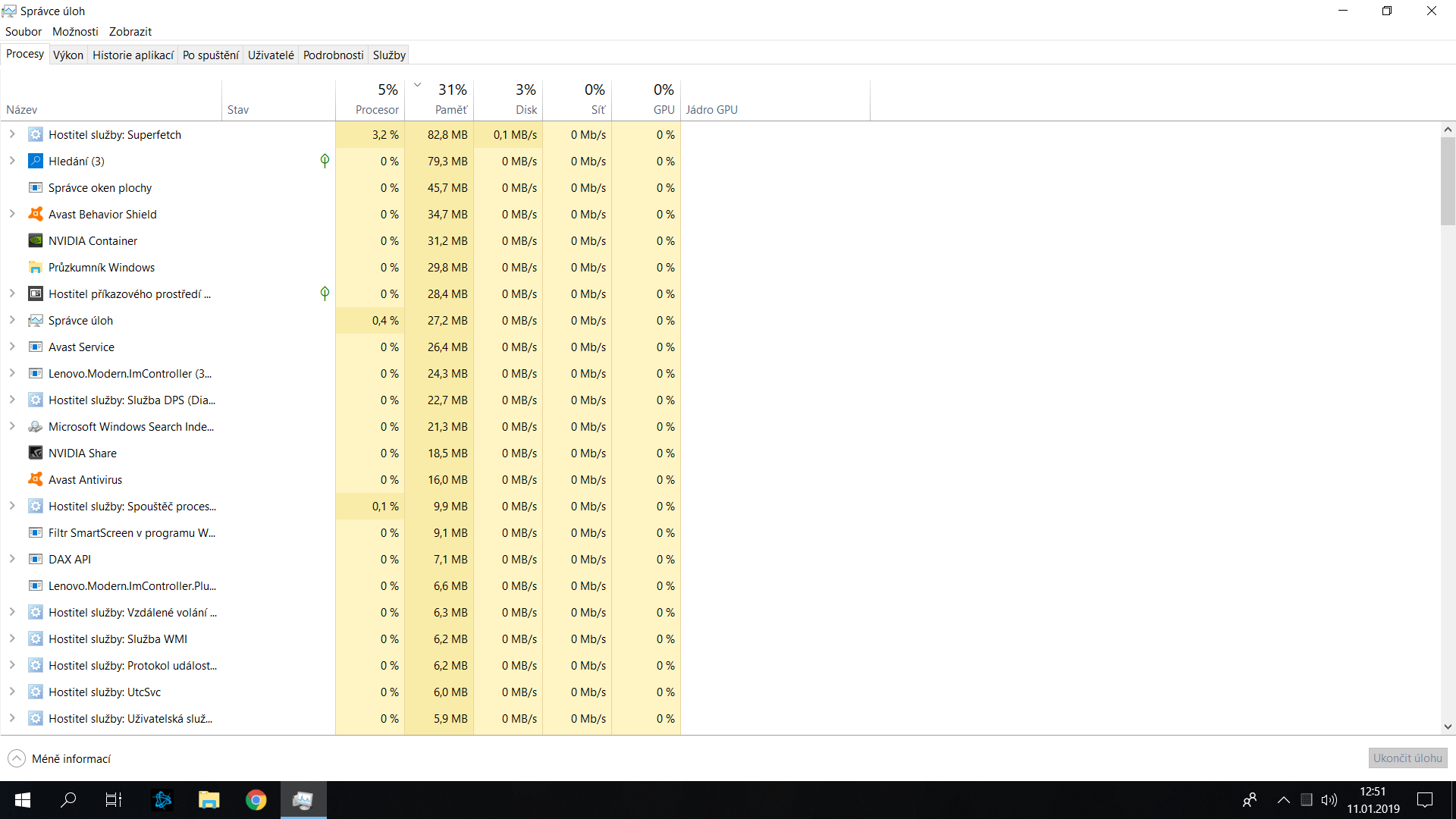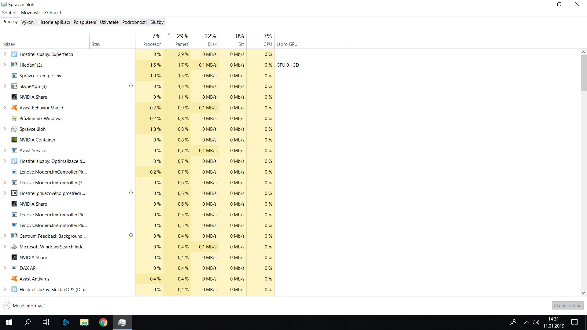 Problém je že když zapnu PC tak již od začátku co běží, bez žádné zátěže, když nic nejede, se vyučívá až 50% RAM ! což nechápu. Tím pádem je hraní her jako GTA 5 dost problém, jelikož se to dost, dost seká. Přikládám screen z správce úloh.