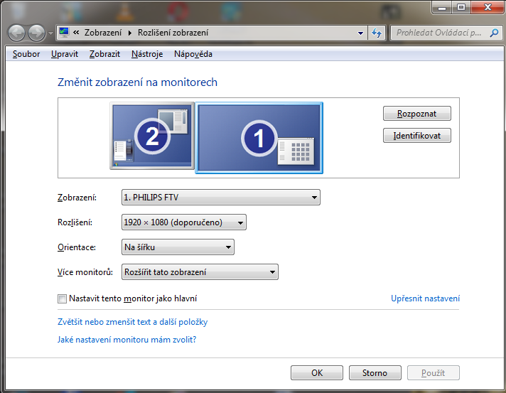 Pravoklik na plochu/Rozlišení obrazovky. Měl bys vidět něco jako tohle.