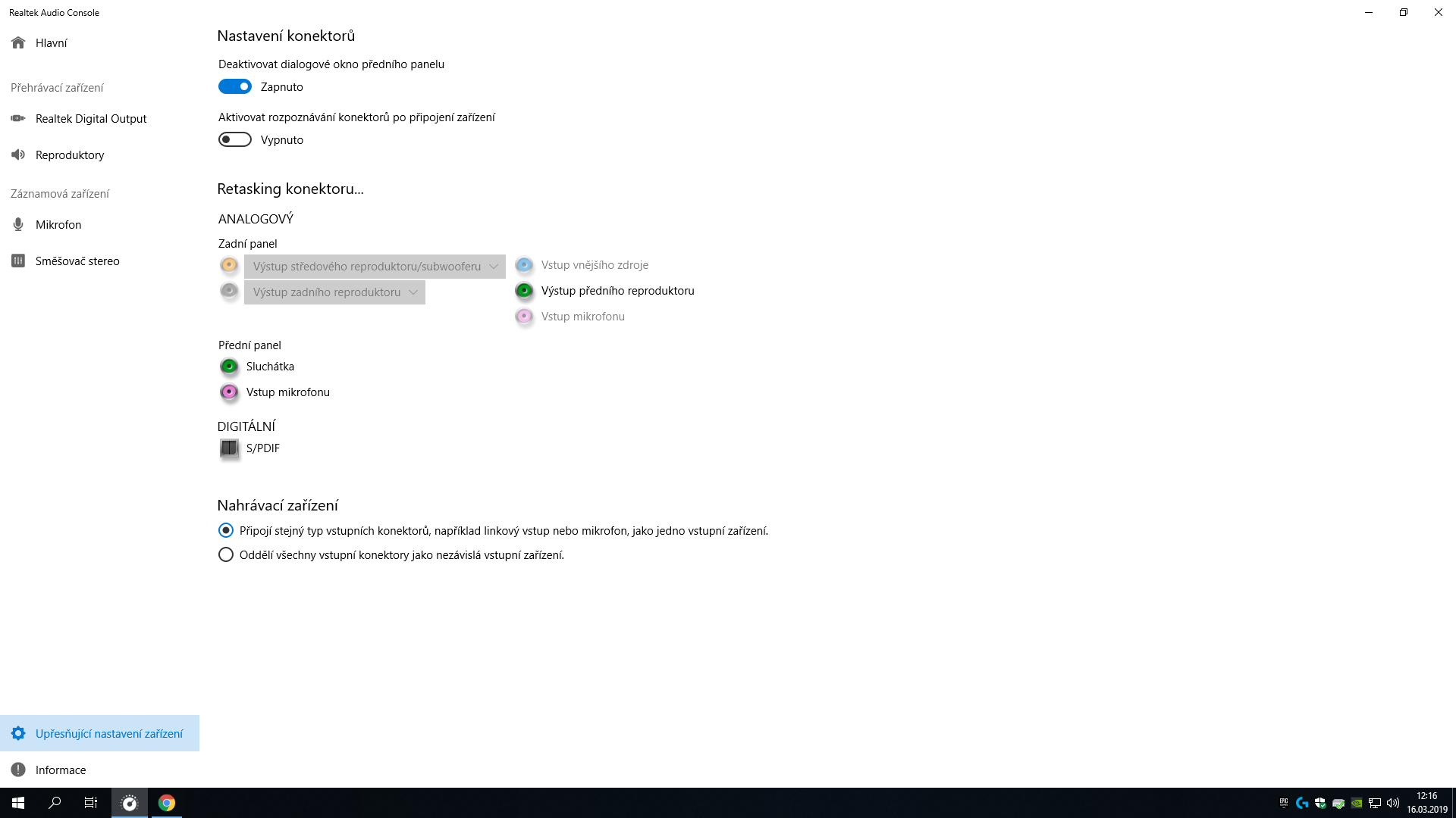 dobrý den mam problém s vystupem pro sluchatka na front panelu zkoušel jsem i to detekování front panelu v ovladači jak všude píšou a stále nejde. mam asrock z390 extreme4 a skrin define s. kdyz sluchatka zapojim do mikrofonu tak v nich praska kdyz do sluchatek tak nic vubec. zkousel jsem tam zapojit i reprak do toho front panelu a v tom jen šumí. děkuji za rady předem.