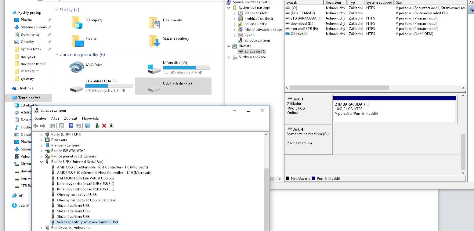 Zdravím ve spolek dnes mám dotaz ohledně mého flash disku. Předpokládám že mi odešel paměťový chip ale tak nějak budu rád když mi to potvrdíte. Flashku system sice vidí, ale nezobrazuje žádné místo ani ve správci disků. Zkoušel jsem jej i na linuxu přes gparted a ten ho nevidí vůbec. Napadá Vás možnost jak disk rozchodit nebo s ním šlahnout? Díky