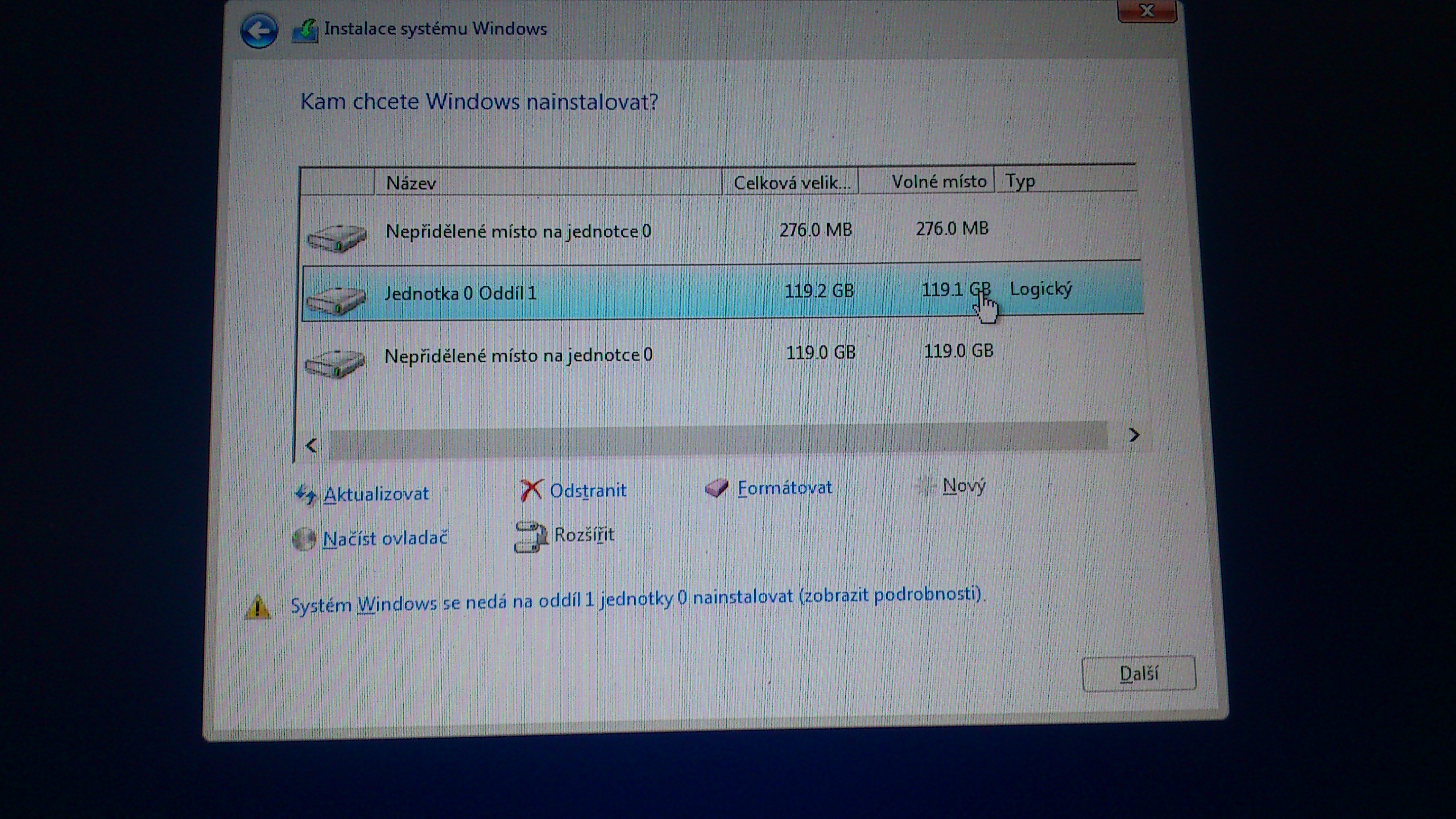 Áno vytvor si USB z ktorého spustíš PC.Nedá sa odstrániť ten oddiel cez tú inštalačku ?