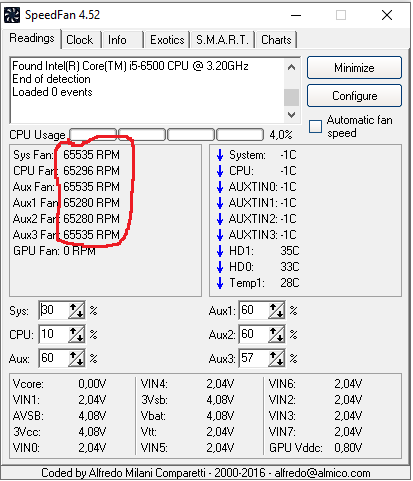 a strašně mi hučí počítač(vydává hlasitý zvuk). Počítač mám starý asi 4 roky a nikdy předtím mi to nedělalo a strašně mě to štve... A tak jsem hledal, čím to může být a zjistil jsem, že problém je nejspíš ve větrácích v PC. Jelikož chci zkusit vše než něco budu muset kupovat, tak jsem stáhnul program SpeedFan na regulaci otáček větráků. Podíval jsem se na mnoho tutoriálů na Youtube jak s tímto problémem zacházet a regulovat otáčky, ale nepomohlo to, protože v programu nejspíše dělám něco špatně, protože jakkoliv to nastavím, v hlavním menu mám stále stejné číslo RPM (viz příloha) u všech větráků(kromě větráku GPU) a otáčky a tím pádem následné ztišení nepřichází, poradil by mi někdo jak s tímto programem nastavit to, abych ty otáčky skutečně správně reguloval? Děkuji za pomoc :) + ještě bych chtěl doplnit, že pc se mi nijak nezahřívá a nejsou s ním žádné problémy, zkrátka mě štve hlasitý zvuk.