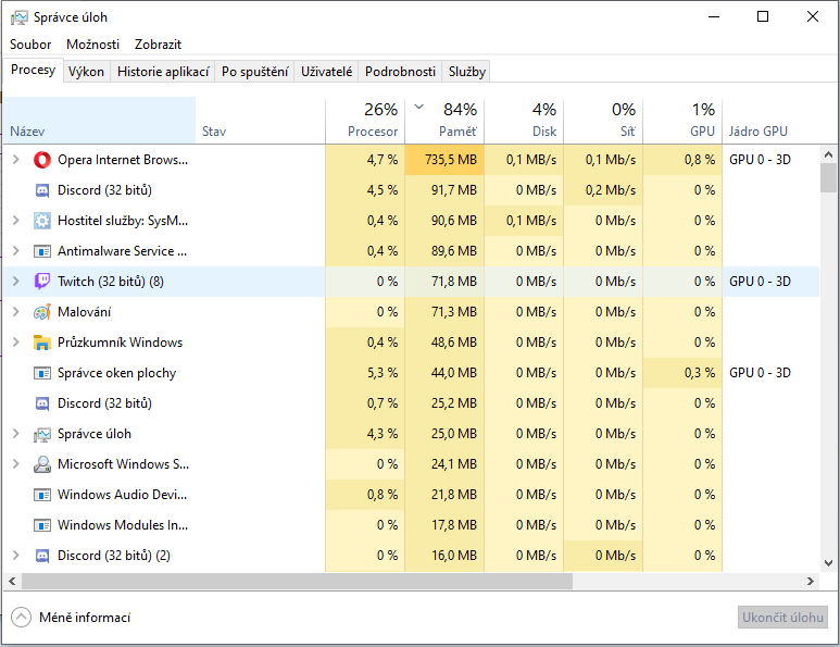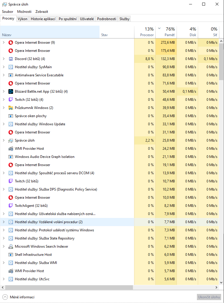 Píšu tam, že se to začalo dít, až po otm co jsem přeinstaloval kompa, a aby to žralo 5 gb když je zapnuté max discord a steam je nějak moc, a to co jsem poslal, je seřazené podle toho jak co vytěžuje ram