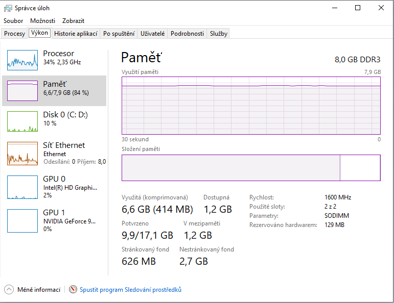 nadměrné využití RAM