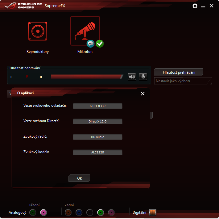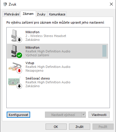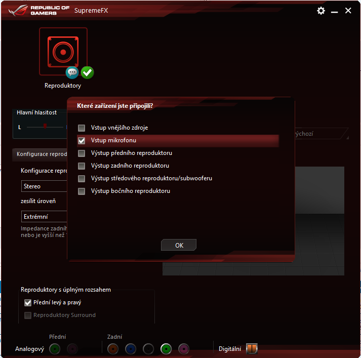 Ano restart jsem provedl po odstranění ovladačů i po nové instalaci. Okno po připojení mikrofonu také vyskočí