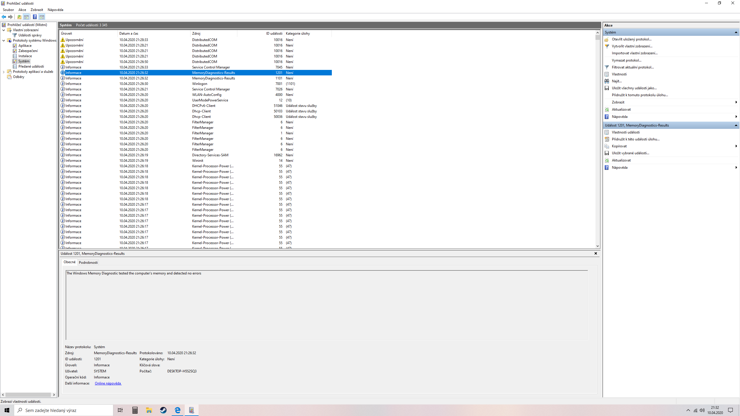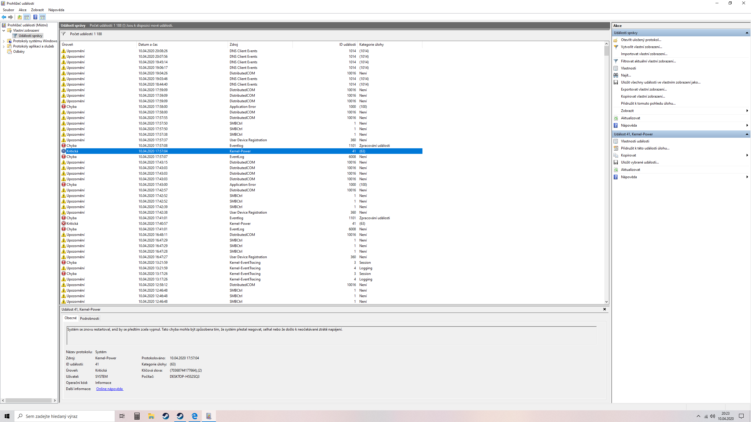 Takže zatím přikládám event log -> kritické chyby