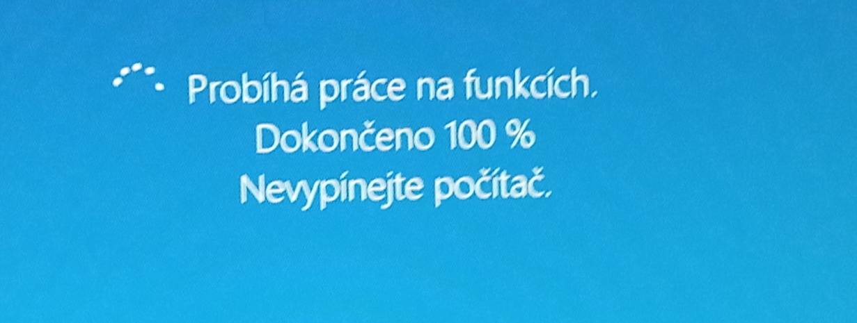 Aktualizace se zasekly na Probíhá práce na funkcích 100%