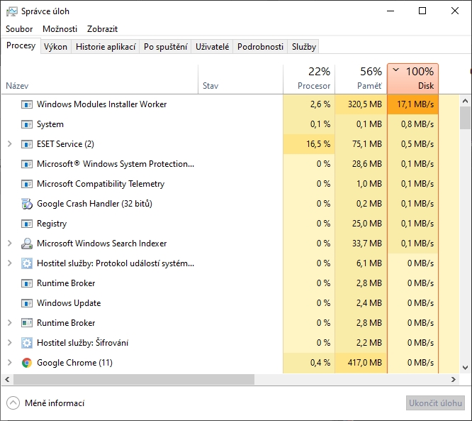 Teď zrovna mi tu běží nějaký Windows modules installer worker 17 MB/s.
