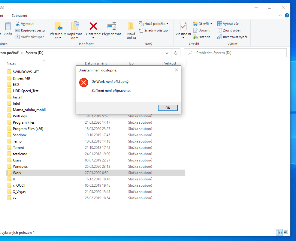 Tak jsem se nakonec rozhodl pro tu redukci od Asusu a nyní jsem to vyzkoušel. Ten disk se chytne, je vidět jeho popisek a využitá velikost, když ho rozkliknu, tak se nejdříve zobrazí jen 8 složek a chvíli se to točí, následně se tam zobrazí všech 21. Jsou tam tedy vidět složky, které jsou v rootu a data změny, ale když chci jakoukoliv rozkliknout, tak mi to napíše, že disk není přístupný a zařízení není připraveno a když označím všechny složky a dám vlastnosti, tak se tam zobrazí velikost 0b.