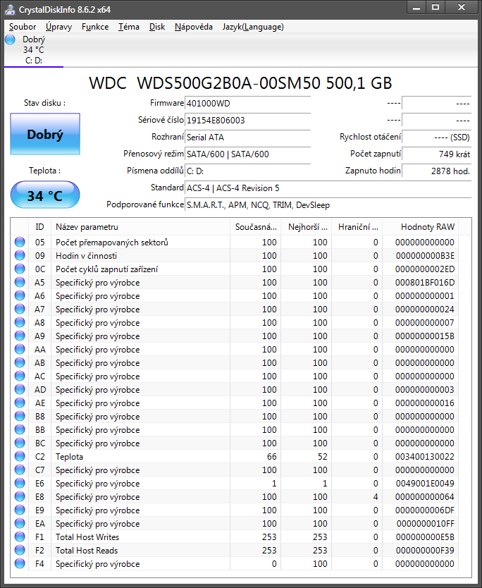 u mého notebooku Lenovo Y50-70 jsem si všiml celkem výrazného zpomalování SSD (WD Blue 500 GB) - stáří SSD je přibližně rok a půl. Spouštění systému se prodloužilo už asi o 2 vteřiny (občas nenačtou všechny ikony v try oblasti - tyto problémy jsem měl u předešlého notebooku s HDD) a například načítání zápasů ve hře rocketleague se prodloužilo o cca 4 vteřiny.