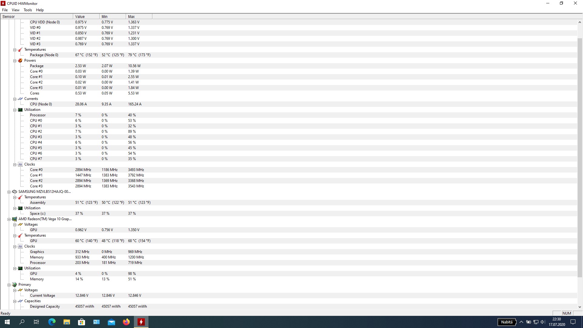 Tady posílám přílohu kdy je notebook v klidu.