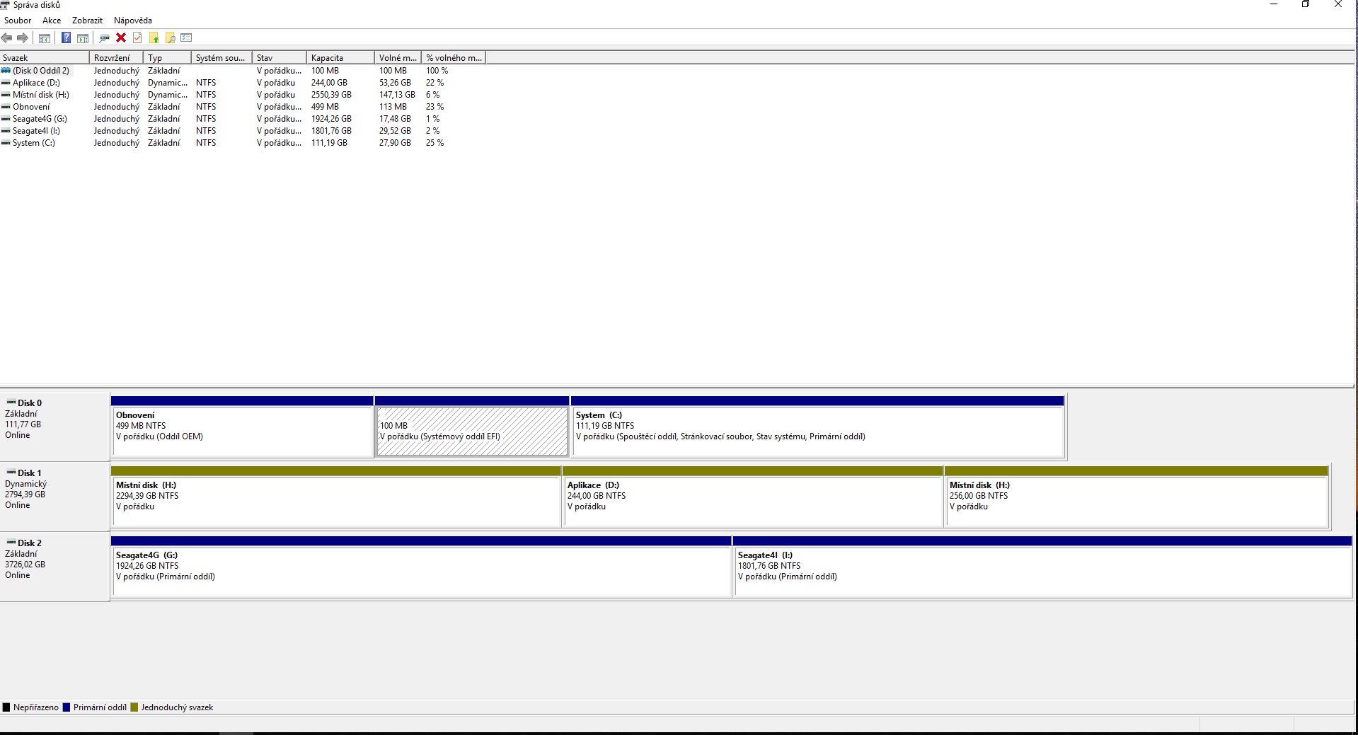Jen taková drobnost, v discích se tolik neorientuju, jak se mi nastaví dynamický disk? Formátoval jsem přes správu disku hned po zakoupení disku, tak jestli za to může správa disku už od začátku , nebo za to může, že jsem ty oddíly následně upravoval? Tj. Že ten oddíl H je rozdělen do dvou oddílu, kdy ten původní byl součástí oddílu D.