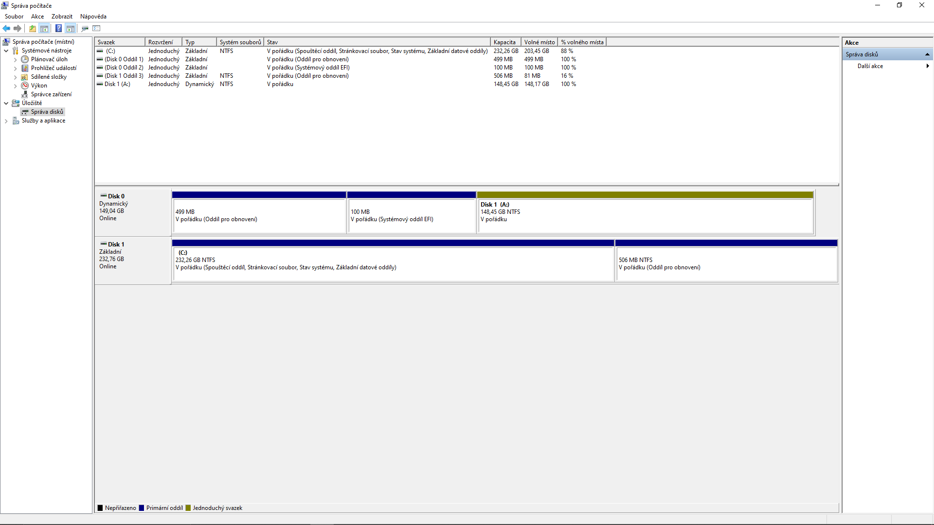 Ten disk co udajne chybi je pod pismenem A a ma 150 GB.