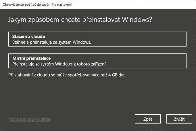 takže mám znovu obnovit počítač do továrního nastavení ?
