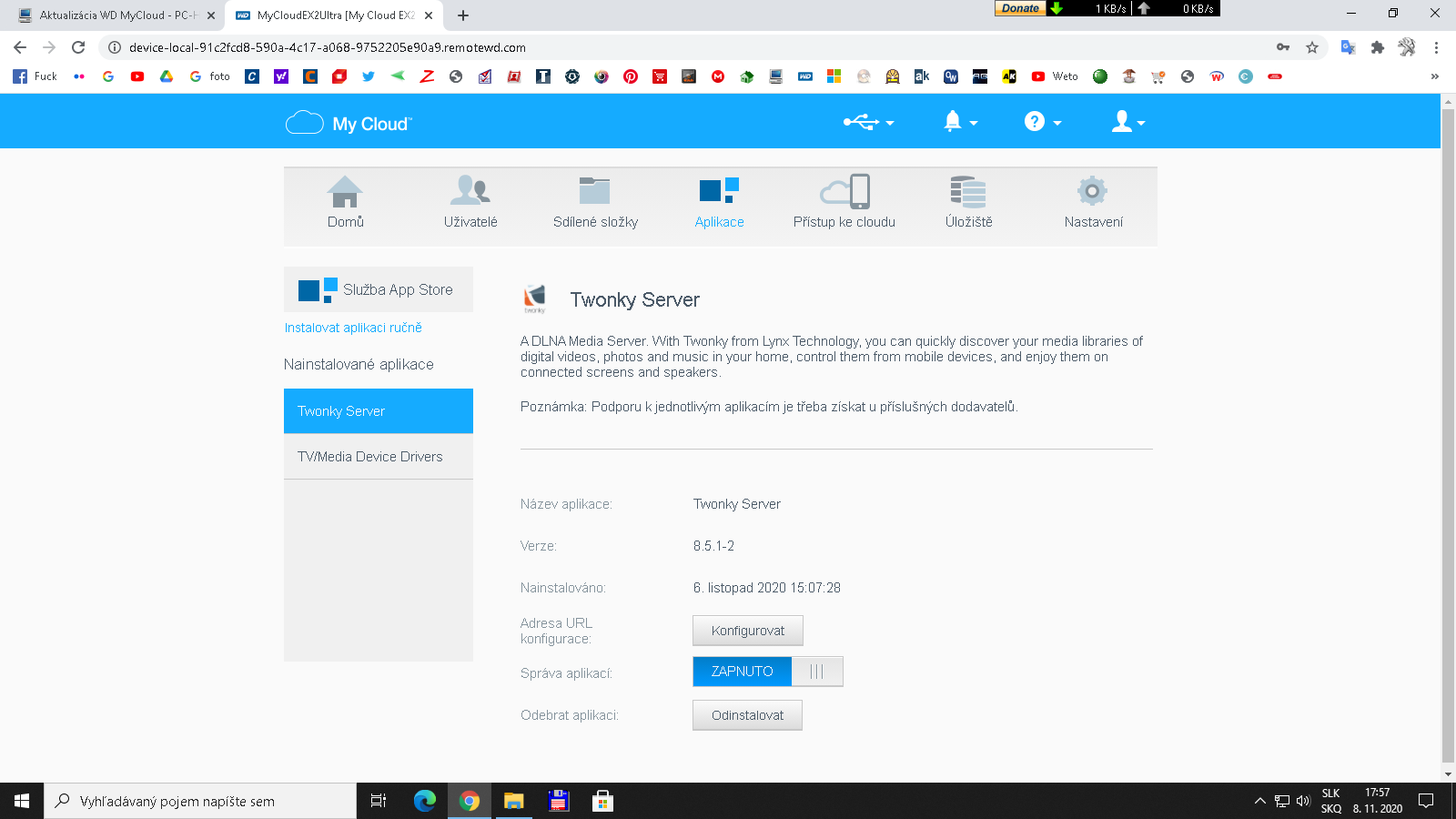 Nastavené to mám takto ale prečo mi v domácej sieti Cloud nevidno, jedine v KODI a v Twonky zase nevidím Sat.tuner. Predtým to všetko fungovalo. TV nevidí ani Twonky a v Twonky ho vidím.